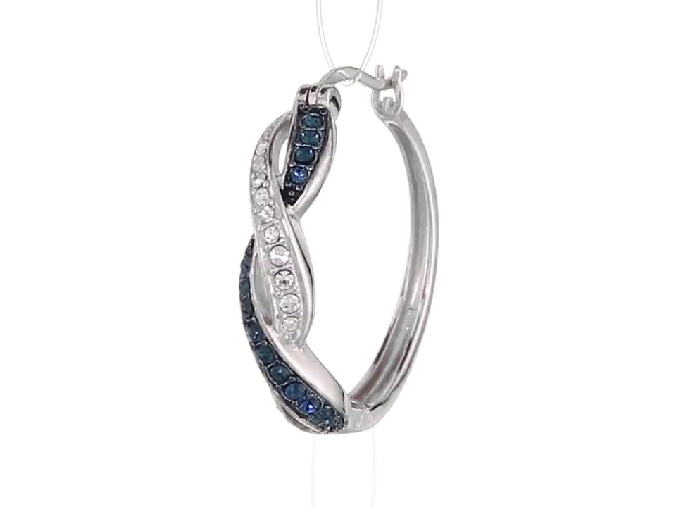 Sterling Silver Montana Blue and White Swarovski Crystal Double Twist Hoop Earrings