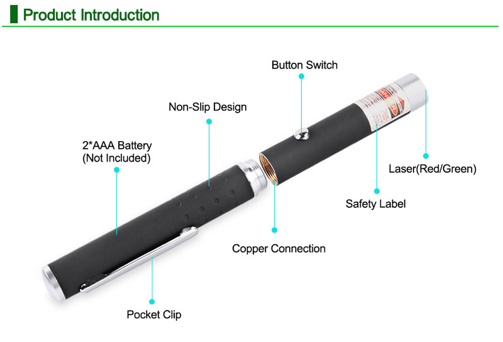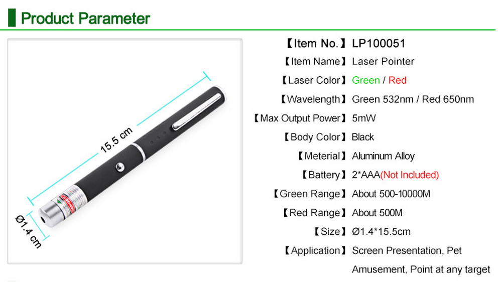 This high-quality laser pointer incorporates the latest technology in red laser optics and Microelectronics.