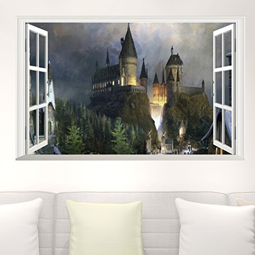 -. Title : Dnven (24"w X 16"h) 3D Full Colour High Definition City Night False Faux Window Frame Window Mural Vinyl Bedroom Living Room Playroom Wall Decals Stickers