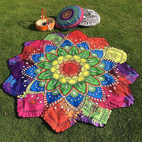 Feature: Material:Polyester Size:147cm(Because it is irregular, the longest measurement is 147cm) Quantity:1PC This gorgeous piece of art can be used as Table Cloth, Curtain and Wall Hanging....Also perfect to take along to a picnic or to the beach These wonderful prints are a great way to add color to your bed, ceiling, and wall Art Usage: Bed Cover, Tapestry, Curtain Or Table Cloth Package Content: 1PC Lotus Hippie Tassel Tapestry Flowers Beach Throw Cushion Towel Yoga Mat Bohemian 0