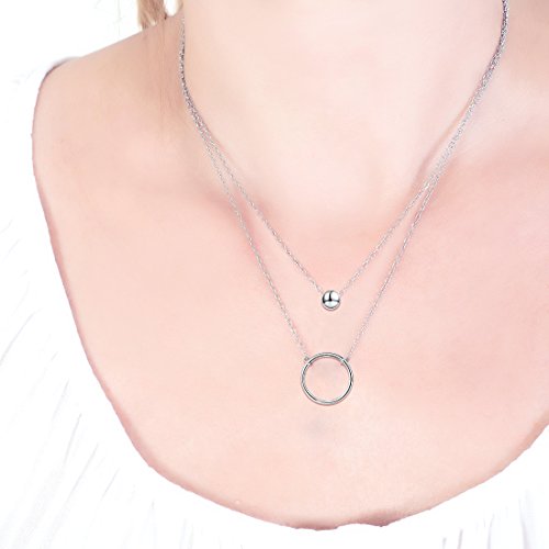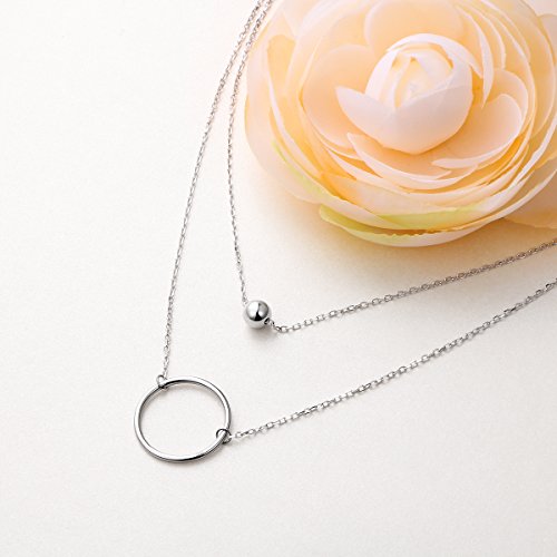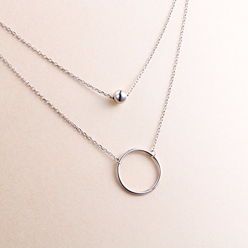 Layered Necklace Length: 18 - 20 inches; Circle size: 0.79 inch Diameter, Bead size: 0.24 inch Diameter; Weight : 4.47 g, Chain Type: Cable