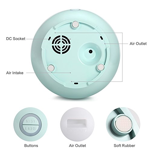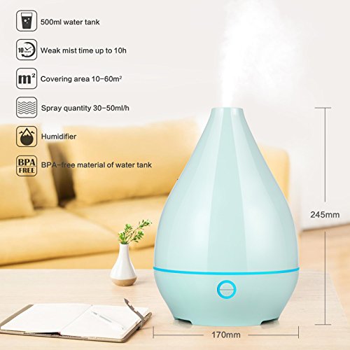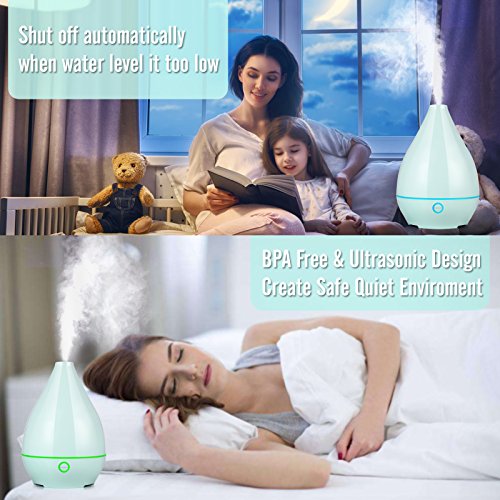 Wineees Humidifier, 500mL Essential Oil Diffuser Portable Ultrasonic Diffusers Cool Mist Humidifier with 7 Colors LED Lights and Waterless Auto Shut-off for Home Office Bedroom Room(Light green)