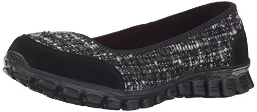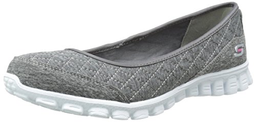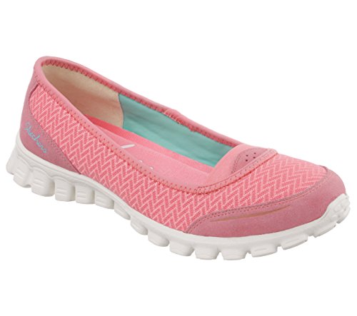 Versatile style and lots of comfort look great on you with the SKECHERS EZ Flex 2- Spruced Up shoe. Soft nylon and smooth faux suede fabric upper in a slip on sporty casual ballet flat sneaker with stitching and overlay accents. Memory Foam insole. Memory Foam cushioned comfort insole. Shock absorbing lightweight flexible midsole. Flexible rubber traction outsole.