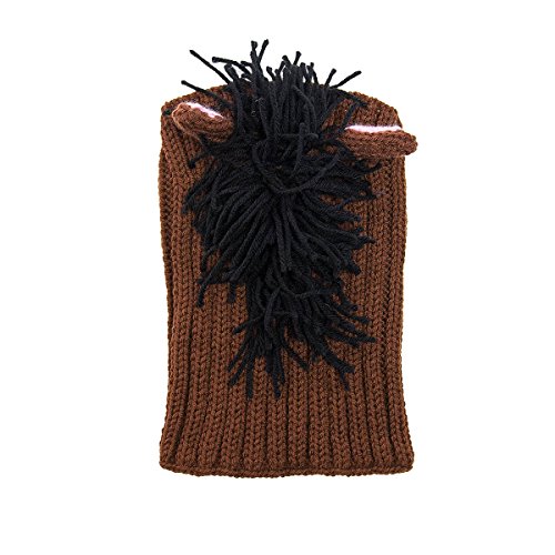 -. Binding : Misc. -. Brand : Zoo Snoods -. Color : Brown -. Feature : Brown "Horse" snood with black mane / 100% acrylic yarn / Available in small, medium, and large sizes / Pictured: 25 lbs cavalier king charles wearing medium size; 13" head measurement -. Label : Zoo Snoods -. Manufacturer : Zoo Snoods -. PackageQuantity : 1 -. ProductGroup : Pet Products -. ProductTypeName : PET_SUPPLIES -. Publisher : Zoo Snoods -. Studio : Zoo Snoods -. Title : Zoo Snoods - The Original Knit Horse Dog Snood