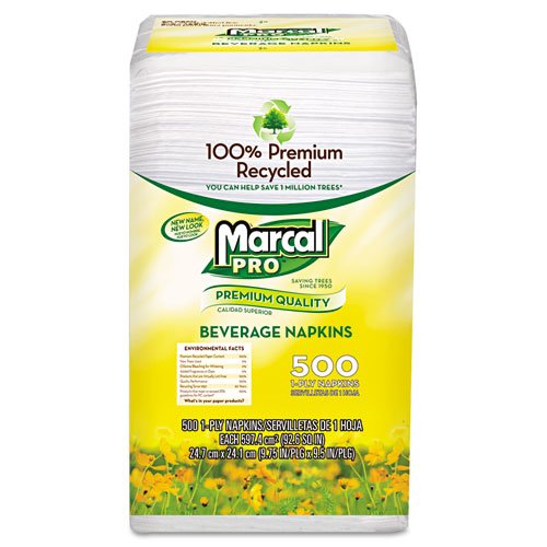 -. Title : Marcal PRO Premium Recycled Beverage Napkins, 1-Ply, 9.75 x 9.5, White, 500/Pack - 4,000 napkins per case.
