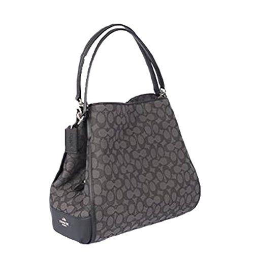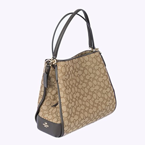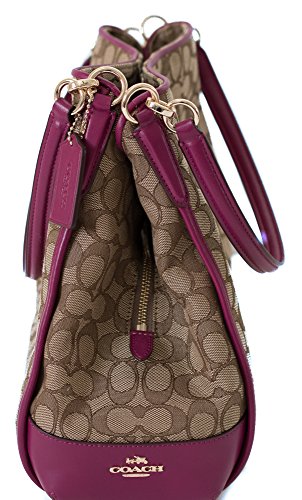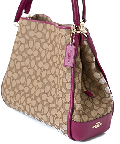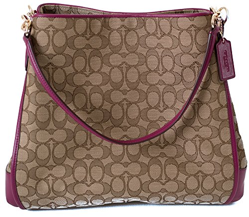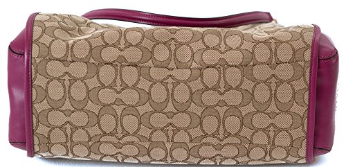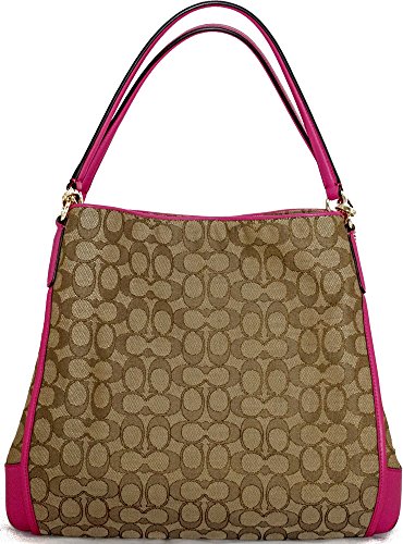 Coach Signature Print Large Jacquard & Leather Phoebe Shoulder Bag Beige Fuschia
