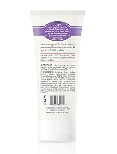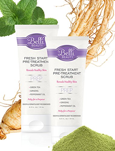 - EXPECT BEAUTIFUL SKIN: Belli Fresh Start Pre-Treatment Scrub is an invigorating scrub that can be used on the face or body. Featuring antioxidant-rich green tea, ginseng, and peppermint oil, it sweeps away old cells to reveal new, healthy skin. Also helps prepare skin for the application of other products!