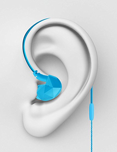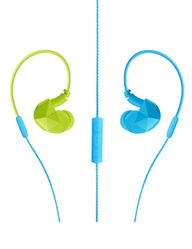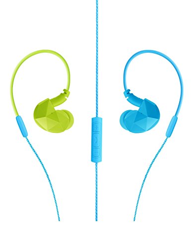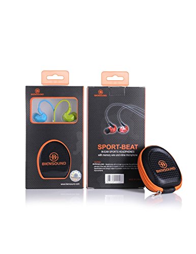 Biensound B9 Sport In-Ear Headphones Noise Isolating Earphones with Memory Wire and In-line Microphone, Volume Control for Sony LG Iphone6 6s Plus iPad iPod HTC Samsung (Transparent Blue&Green)