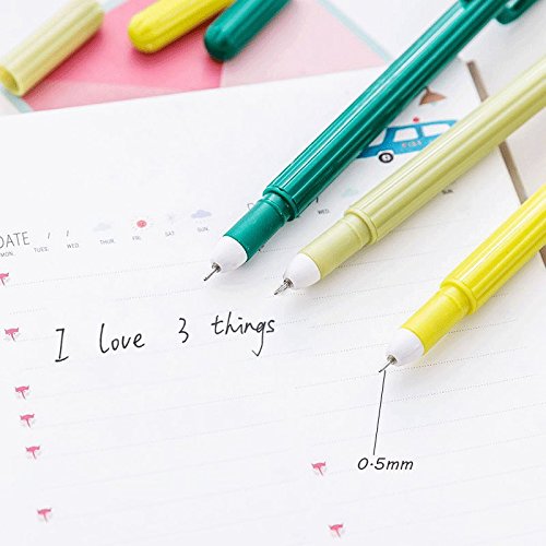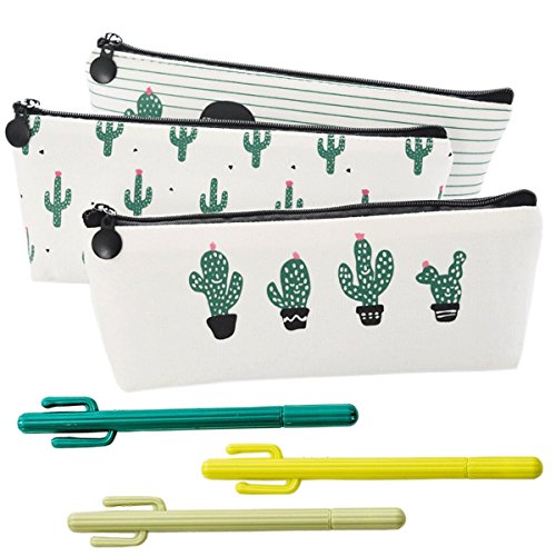 Set of 6, Students School Supply Stationery Organizer Canvas Cosmetic Bag Green Cactus Pencil Case(3 Case, 3 Gel pens)