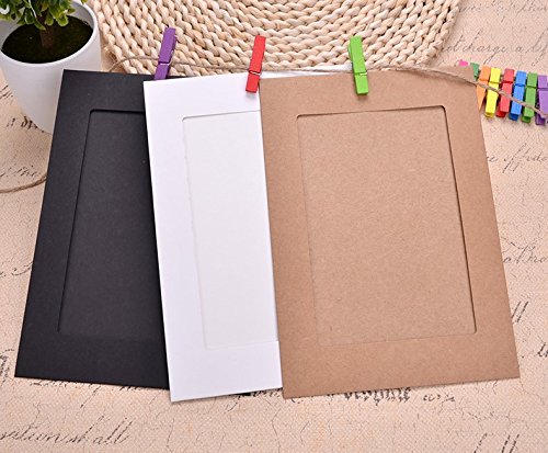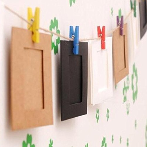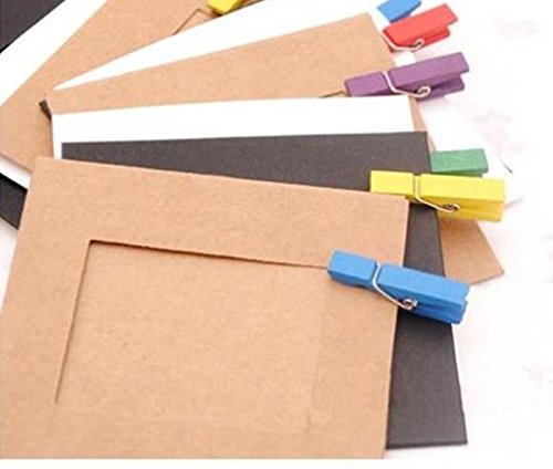 Wall Deco DIY Paper Photo Frame with Mini Clothespins and Stickers - Fits 4"x 6" Pictures (Multi-color) By Snow Courage