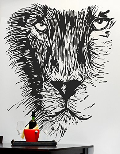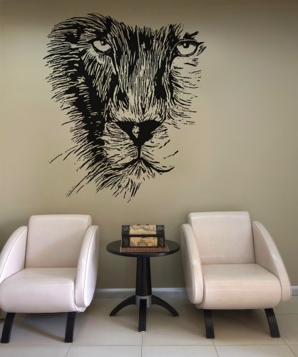WALL DECAL INFORMATION: This Lion Face Vinyl Wall Decal is 36in X 31in. item #OS_MB541s (BLACK color).