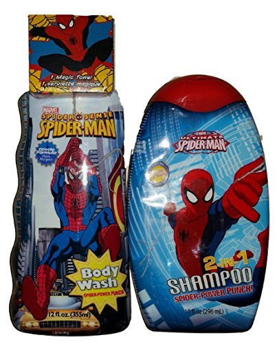 -. Title : Marvel Ultimate Spiderman 2 in 1 Shampoo Amazing Spider-man Body Wash and 1 Magic Towel 3 Piece Boys Gift Set