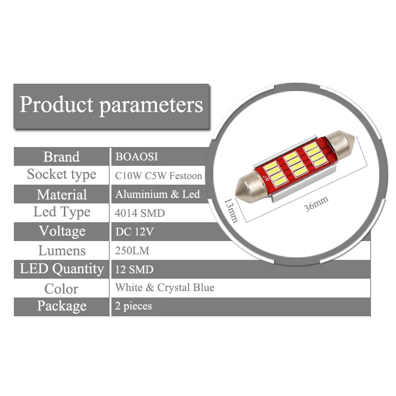 Size :36mm (1.50")12V Festoon Dome Light LED Bulbs