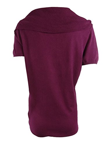 Top features no lining, cowl neckline, short sleeves, knit sweater fabric, and pullover style.