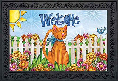 -. Brand : Briarwood Lane -. EAN : 0814212026839 -. Feature : 18" x 30" / Printed on fade resistant polyester material with a non-skid rubber backing / Recommended for use with Briarwood Lane mat tray (pictured, not included) / Indoor/Outdoor use -. Label : Briarwood Lane -. Manufacturer : Briarwood Lane -. MPN : D00321 -. PackageQuantity : 1 -. PartNumber : D00321 -. ProductGroup : Lawn & Patio -. ProductTypeName : OUTDOOR_LIVING -. Publisher : Briarwood Lane -. Studio : Briarwood Lane -. Title : Welcome Cat Spring Doormat Indoor Outdoor Fence Kitty 18" x 30" Briarwood Lane -. UPC : 814212026839