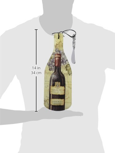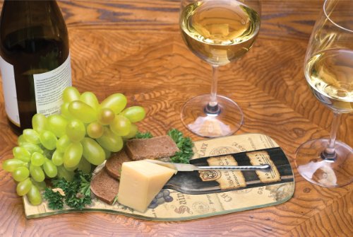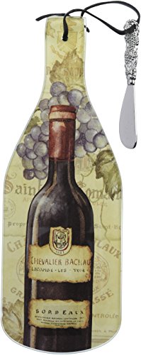 CounterArt Vineyards Wine Bottle Shaped 12-1/2 Inch Glass Cheese Board with Spreader Knife