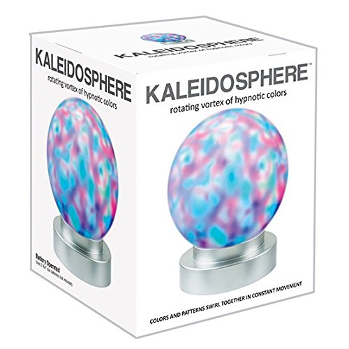 Studio : WESTMINSTER INC Publisher : WESTMINSTER INC Binding : Misc. Product Description A rotating vortex of hypnotic colors. Interior lights, colors, and patterns swirl together in constant movement and rotate for Kaleidoscopic effects.Uses 3 "AA" batteries (not included). Frosted white globe with gray plastic base. Measures 5-1/2"W x 7"H. 0