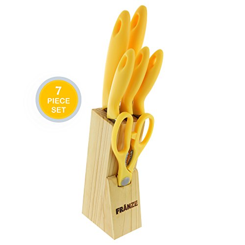 Nelsons Deals스테인레스 스틸Germin스타일 부엌칼 나이프 세트with목제 블럭7Piece 쉐프 부엌칼 나이프 ,빵 잘라 부엌칼 나이프 , 부엌칼 나이프 ,유틸리티 부엌칼 나이프 ,과일 부엌칼 나이프 ,고,