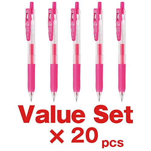 -. Title : Zebra Sarasa Clip 0.5 Retractable Gel Ink Pen, Rubber Grip, 0.5mm, Neon Pink Ink, Value Set of 20 with Ecology Sticky Notes
