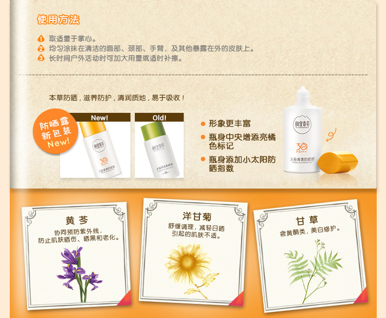 相宜本草清透防晒露SPF30清爽保湿女防晒霜