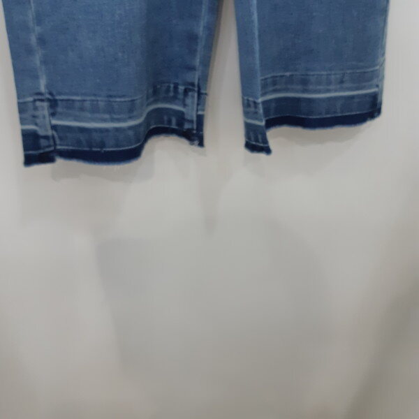 미디엄 톤보다 약간밝은톤의워싱 밑단의 음영디테일을주어 유니크함을 살린와이드 핏