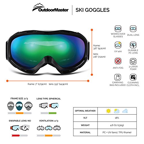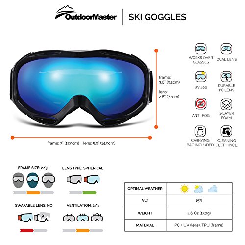 -. Feature : OTG SKI GOGGLES FOR MEN & WOMEN: Unisex Snow Goggles for Men, Women & Youth that can be worn over prescription glasses. Designed with performance and versatility in mind. / EXCELLENT OPTICAL CLARITY & 100% UV PROTECTION: Featuring a dual layer lens with mirrored appearance and anti-fog coating, these goggles provides excellent optical clarity as well as 100% UV400 protection. / COLOR OPTIONS FOR EVERYONE: Available in a variety of different styles and colors, these are the perfect goggles not only for skiing & snowboarding, but also works great for ATV, snowmobile and snocross. / HELMET COMPATIBLE ADJUSTABLE STRAP: The extra long adjustable strap allows for helmet compatibility with any helmet and makes these the perfect goggles for both men, women & youth. / WHAT YOU GET: 1 x OutdoorMaster Mirrored OTG Ski Goggles, 1 x Carrying Pouch, our customer-favorite 6 months warranty and friendly customer service.