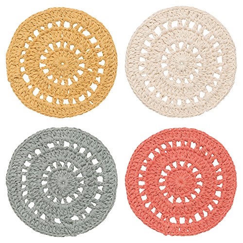 - The Danica Studio Amber Crochet Coaster Set includes four handmade coasters made from 100% cotton.