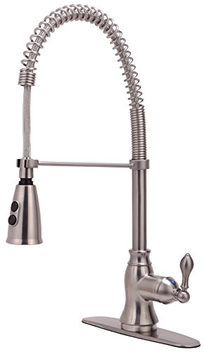 Derengge KF-5988-SS Single Handle Spring Spout Kitchen Faucet with Pull-Down Sprayer, 1 Hole or 3 Hole Installation, Meets cUPC NSF61-9 and AB1953 Lead Free Standard, Stainless Steel