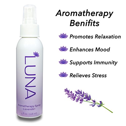 100% PURE LAVENDER OIL: Luna Lavender Aromatherapy Spray uses 100% pure lavender oil to provide you with a deep sense of relaxation and peace. The coumarins found in lavender oil are known to soothe muscle pain, lower blood pressure, and act as a sedative for those suffering with body tension or sleep problems.
