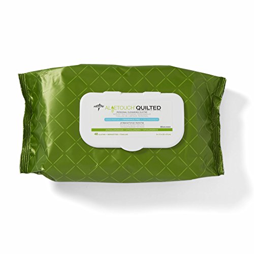 Medline MSC263625H AloeTouch Quilted Heavyweight Personal Cleansing Cloth Wipes, Unscented, 8" x 12" Adult Large Incontinence Wipes (Pack of 48)