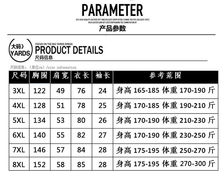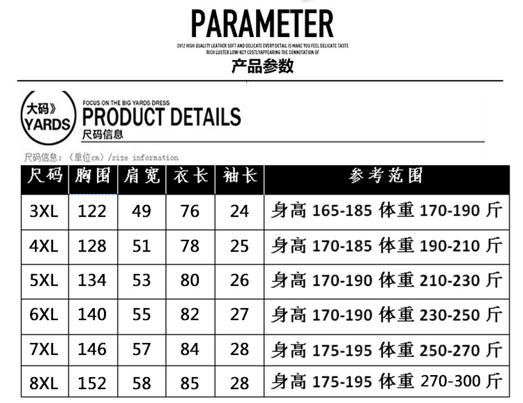 Size:3XL/4XL/5XL/6XL/7XL
