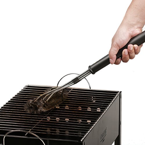 10" LENGTHENED HANDLE- The BBQ grill brush is 18" long with 10" durable handle, which is the perfect distance to keep hands away from the heat. The customers can hold their two hands and force. We choose woven stainless steel design that has extra reinforcement.