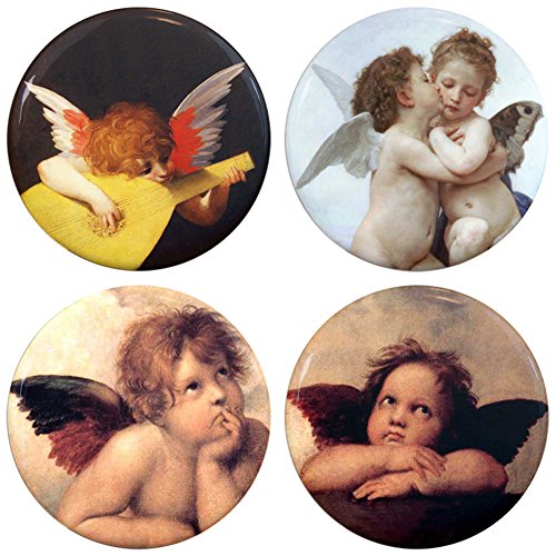 Buttonsmith Little Wings Angels and Cupid 1.25" Refrigerator Magnet Set Featuring Raphael's Sistine Angels- Made in the USA