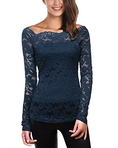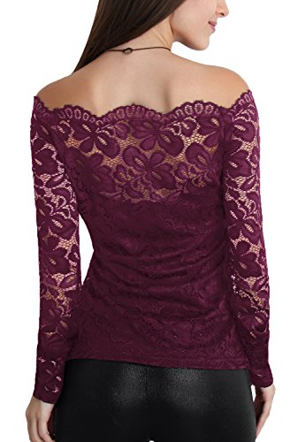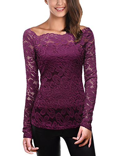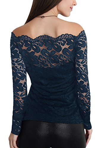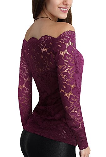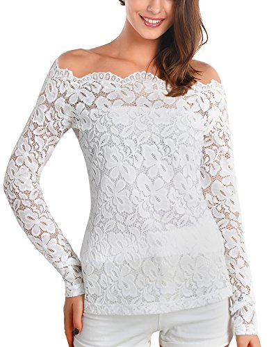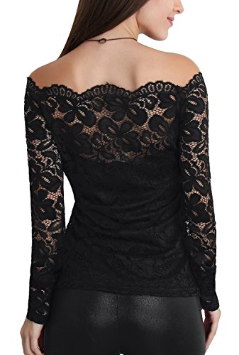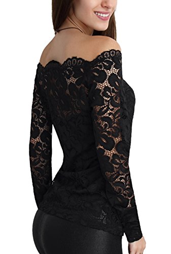 -. Title : DJT Damen Langarmshirt Bluse mit Tops Floraler Spitze Weg von der Schulter oben