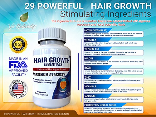 ✔ ALL NATURAL & SAFE HAIR GROWTH FORMULA: Made in the USA, every batch produced is governed by strict GMP guidelines for safety and quality assurance. Hair Growth Essentials is completely free of fillers, binders, or artificial ingredients with NO unwanted side effects. This is as clean and pure as it gets.