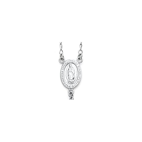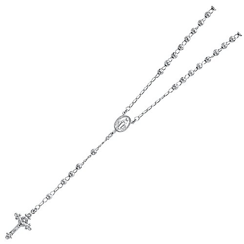 -. Title : .925 Sterling Silver Rhodium Plated 3mm, 4mm, 5mm Diamond Cut Beads Vergin Marry Rosary/Rosario Necklace