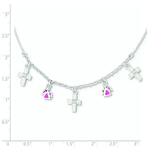 -. Title : Sterling Silver 14in Enamel Synthetic CZ Cross and Angels Childs Necklace