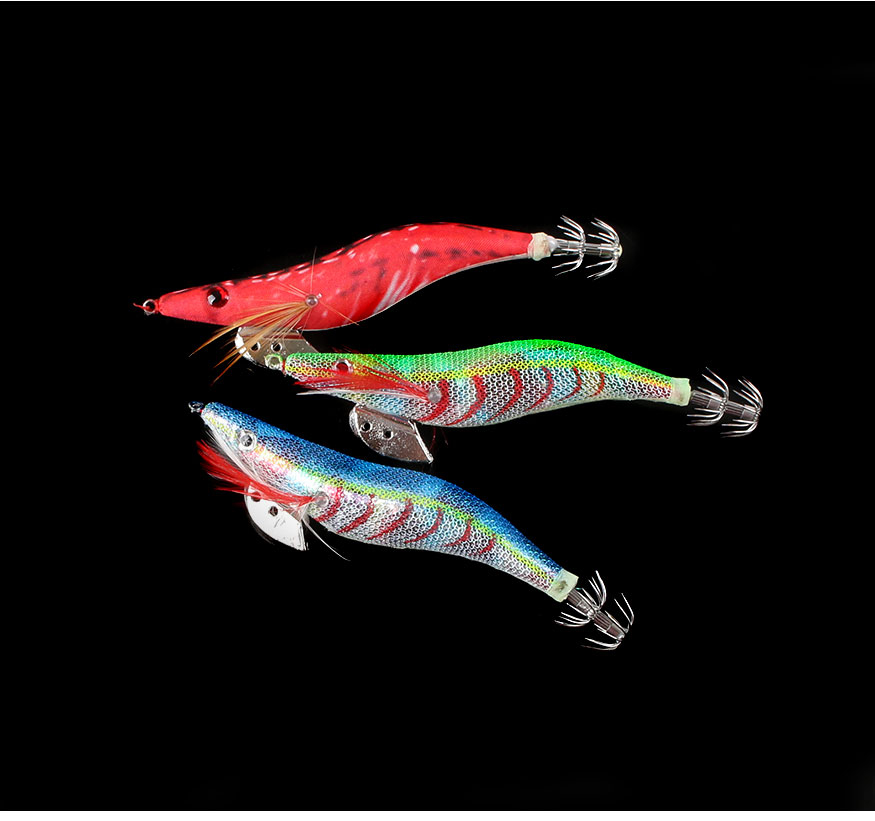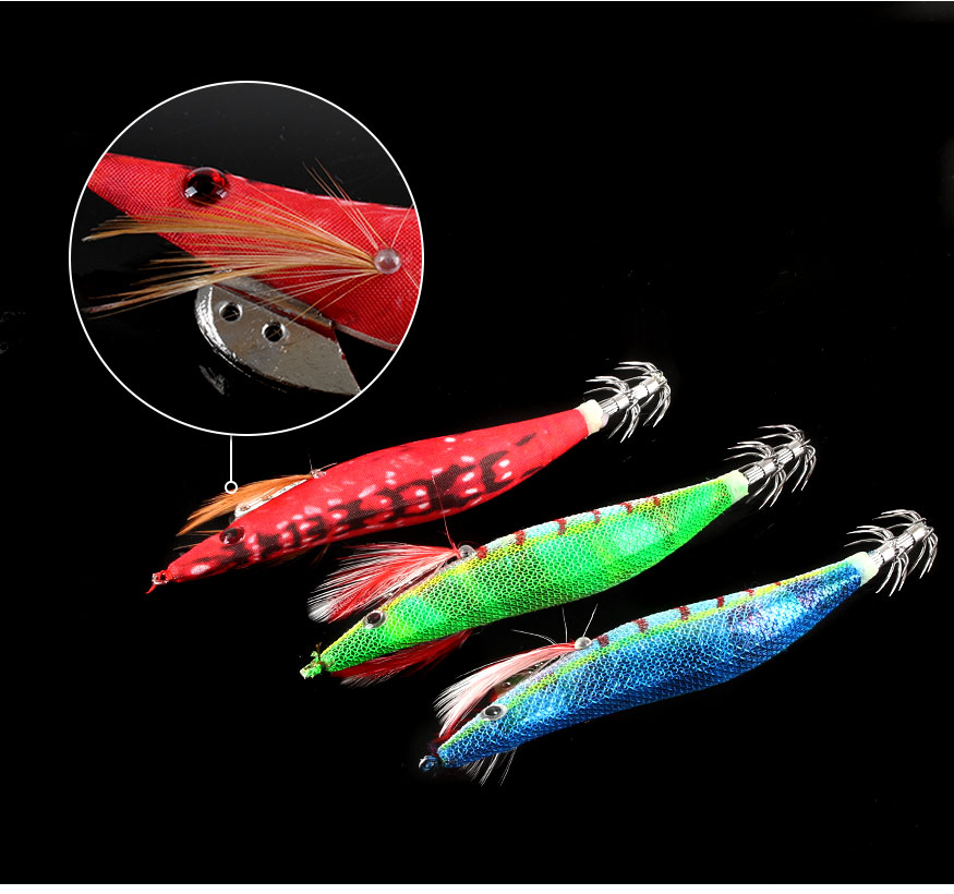 천연 기털을 사용하여 오징어의 공격본능을 자극