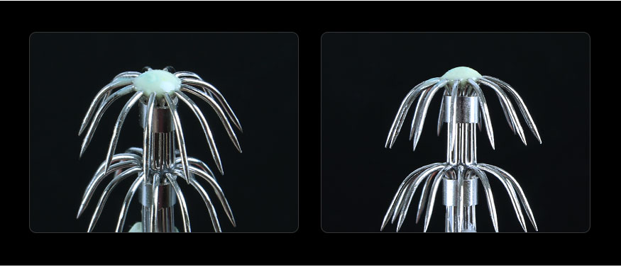 스탠과 폴리카본 래틀을 삽입하여 래틀 사운드 효과로 먼 곳의 오징어를 불러모음