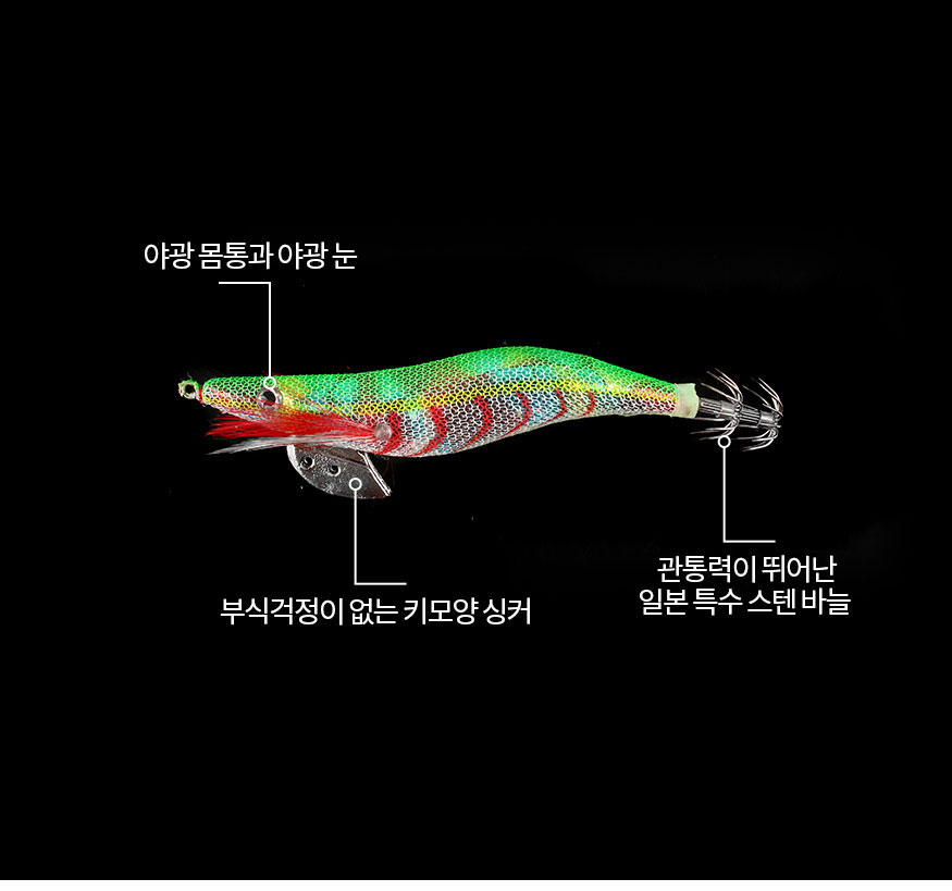 한국 특성에 맞는 야광 몸통 및 특수 야광 도료와 야광 눈을 사용하여 시인성이 뛰어남