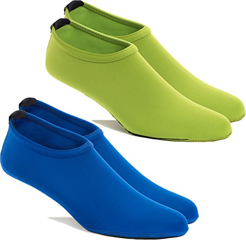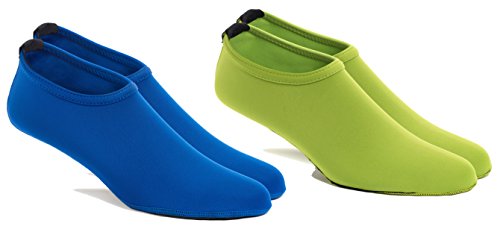 FUN TOES -2 PAIRS Water Skin shoes Aqua Socks for Water Sports Beach Pool Surf (Large Women 6.5-8, Men 5.5-7, 1 Blue- 1 Green)