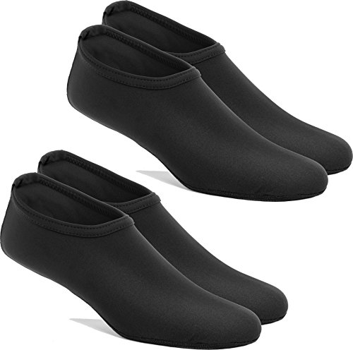FUN TOES Water Skin Aqua Socks Spandex- Neoprene Sole for Water Sports 2 PAIRS (Large Women 6.5-8, Men 5.5-7, Black )