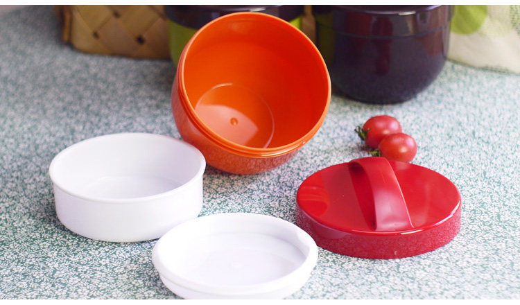 双层圆形便当盒,小巧可爱,带提手,饭菜分开,适合儿童和小饭量的MM食品级材质,很有质感,日本家居大牌CAINZ超市定制货,对产品品质要求很高。