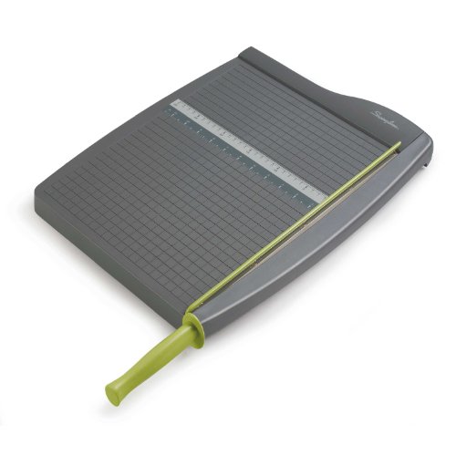 Guillotine cutting of up to 10 sheets at once; 12" cutting length; alignment grid and dual scale ruler for precise measuring