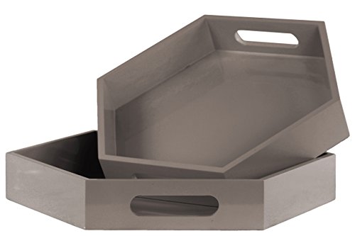 Urban Trends Wood Hexagonal Serving Tray with Cutout Handles Coated Finish (Set of 2), Taupe