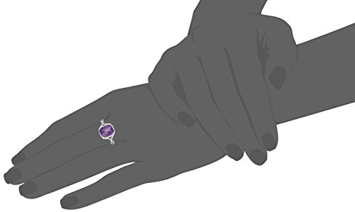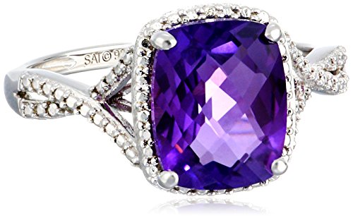 Sterling Silver Amethyst and Diamond-Accented Ring, Size 7