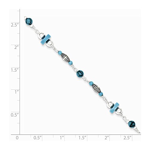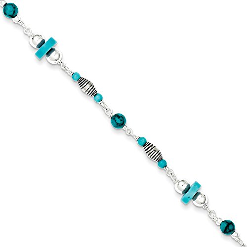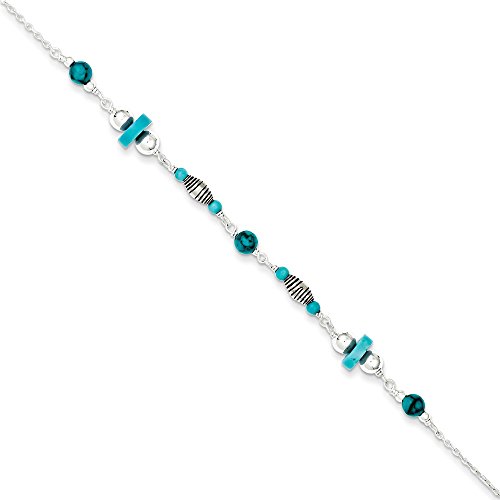 -. Title : Sterling Silver 9in Reconstitued Turquoise Anklet