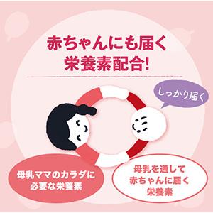 ●普段の食事にプラスするだけで、母乳を作るママのカラダに必要な栄養と、母乳を通して赤ちゃんに届く栄養をムリなくしっかりサポートできます。