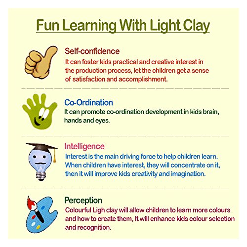 MODELING CLAY FOR KIDS is Lightweight, Soft and Flexible. It Is So Elastic You Can Mold a Ball and Bounce It Like a Real Ball. Great For Playing, Creative Building, Brain Development and Hand Eye Coordination