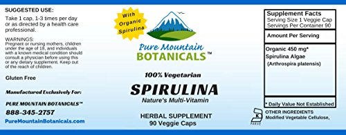 100% MANUFACTURE’S MONEY BACK GUARANTEE – Try the Best - Risk Free! These Spirulina Organic capsules and ALL Products from Pure Mountain Botanicals™ are covered by a no-questions asked money back guarantee.